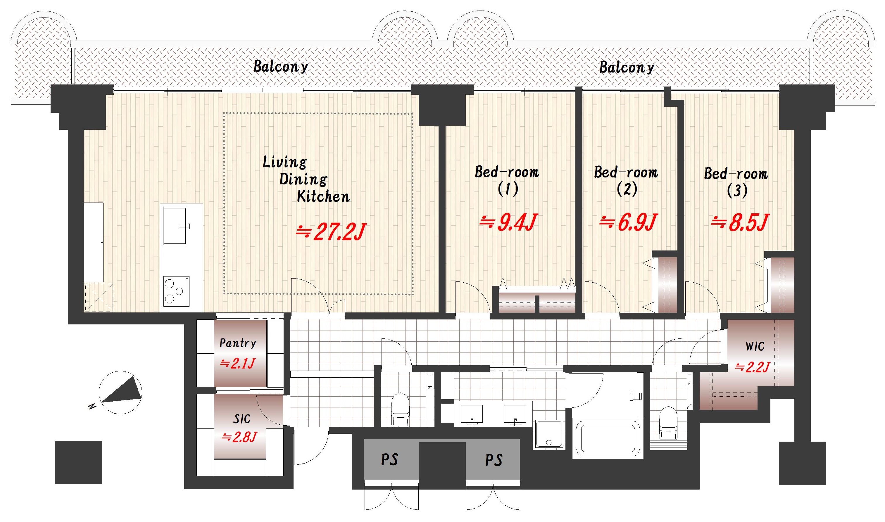 | 間取詳細 | 3LDK+WIC+SIC | ||